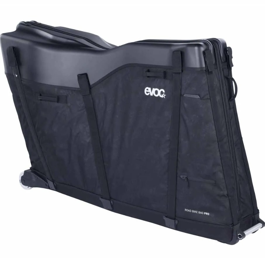 The Evoc Road Bike Bag Pro is a revolutionary hybrid travel solution designed specifically for performance road and triathlon bicycles. By combining a high-impact polycarbonate top shell with a soft, abrasion-resistant base, Evoc has created a bag that offers the structural protection of a hard case with the weight savings and packability of a soft bag. This design ensures that the most sensitive areas of your bike—the cockpit and the drivetrain—are shielded from heavy impacts during air travel.