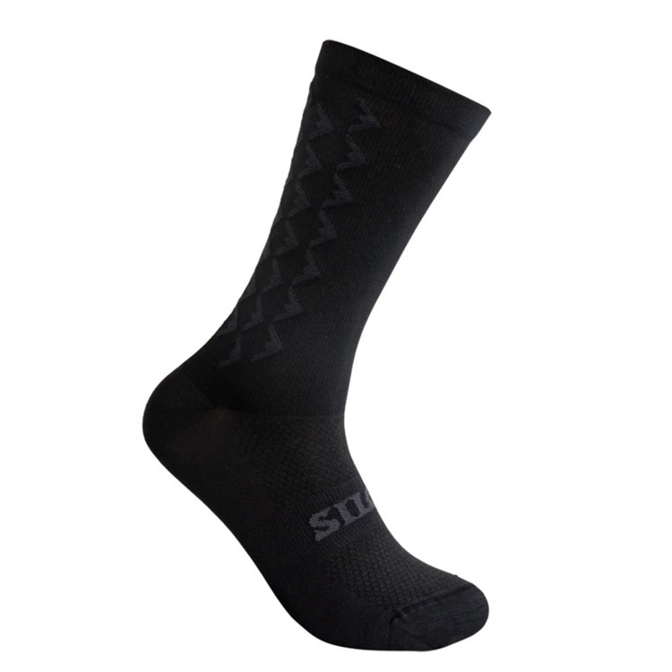 Can we make an aero sock, that is first and foremost a really good sock? Josh worked with a team in Italy who is quite famous for making the finest socks in the world, and who also has some of the most modern kitting machinery in the world. The goal was to make a knit sock that won't fall down, but has a combination of smooth and rough texture to trick the air into flowing around the lower leg more efficiently. The result is a sock which matches the aerodynamic performance of ribbed lycra cuff socks, while retaining all of the features you demand from a cycling sock.